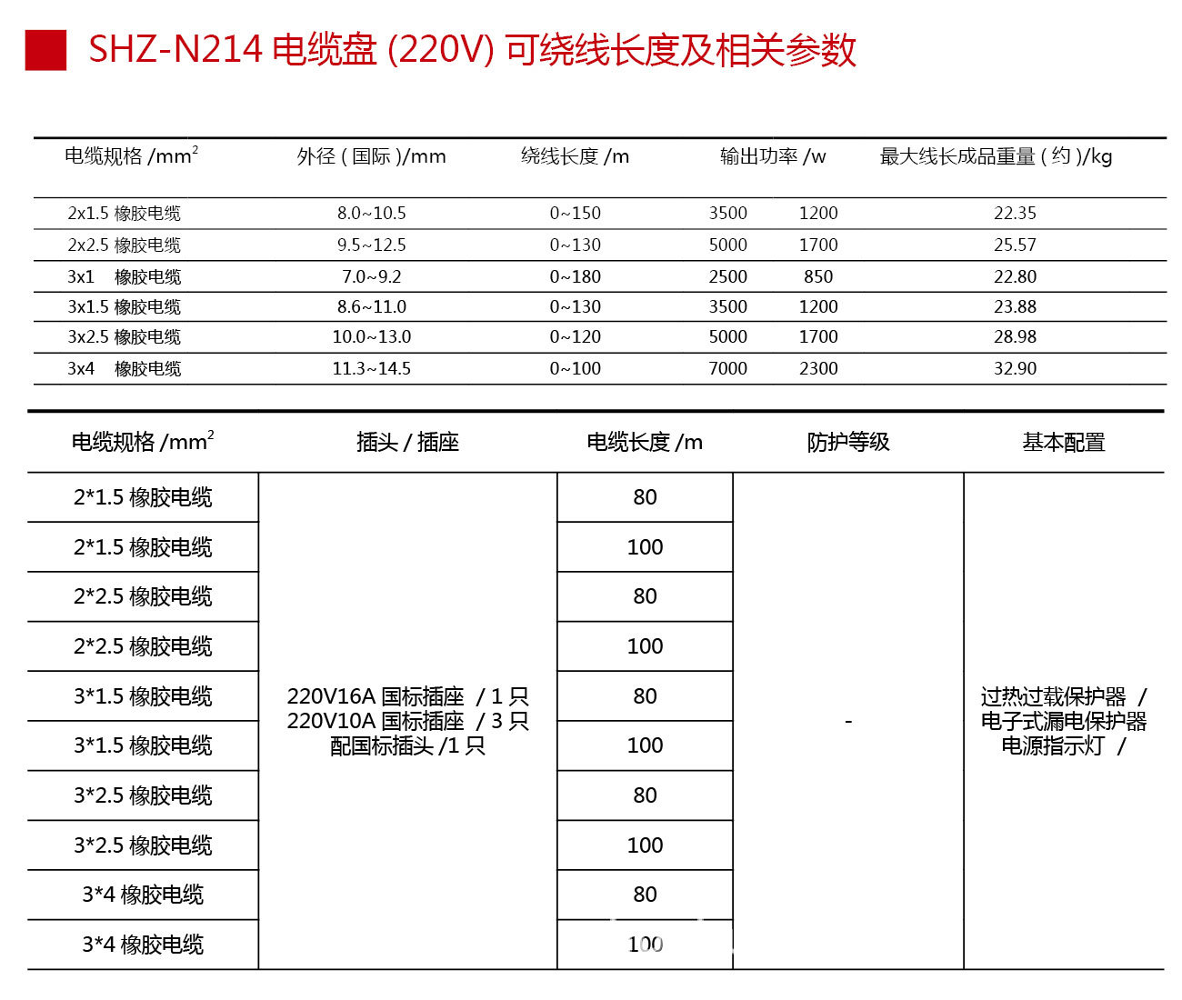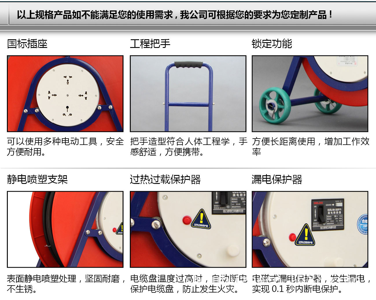 5.过热和过载保护器:电缆盘温度过高时,会自动切断电源以保障电缆盘,以防止火警。