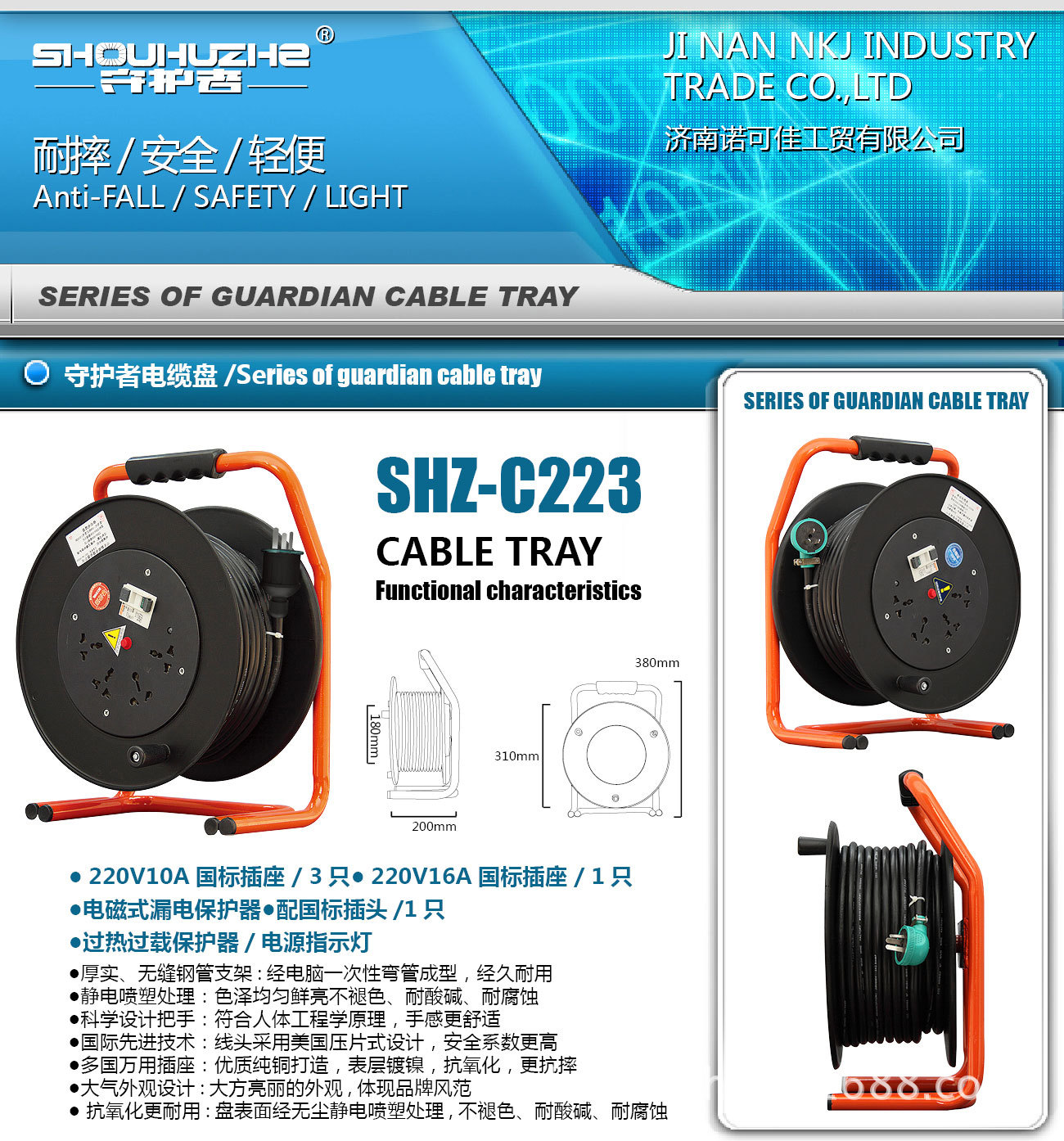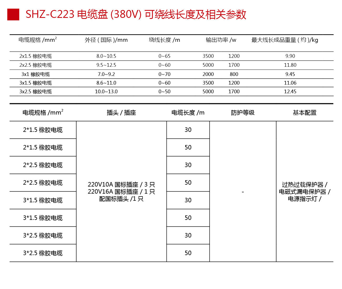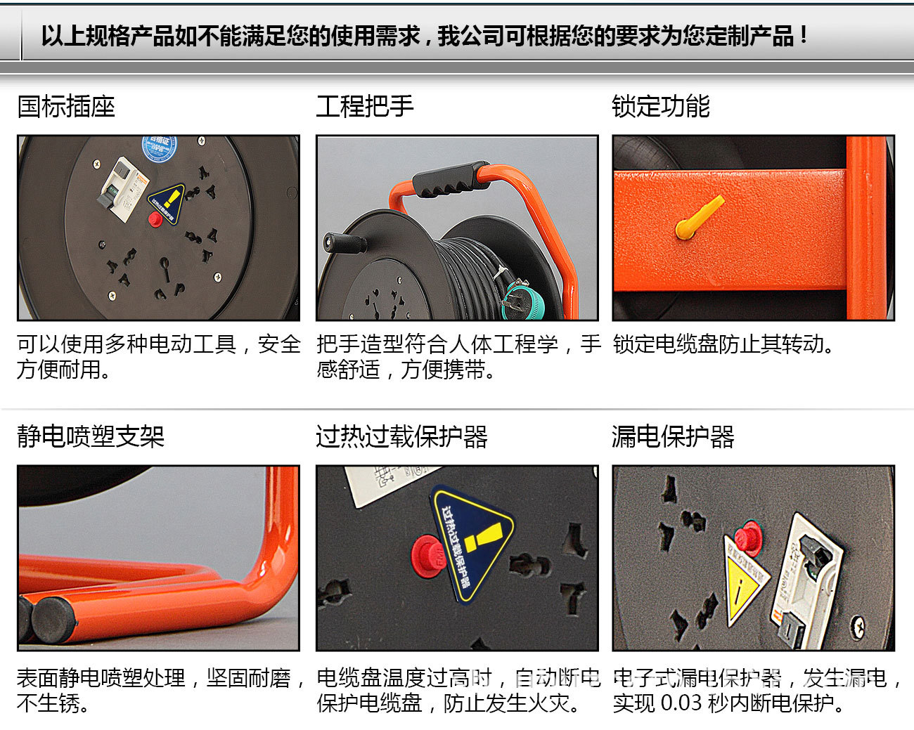 5.过热和过载保护器:电缆盘温度过高时,会自动切断电源以维护电缆盘,以防止火警。