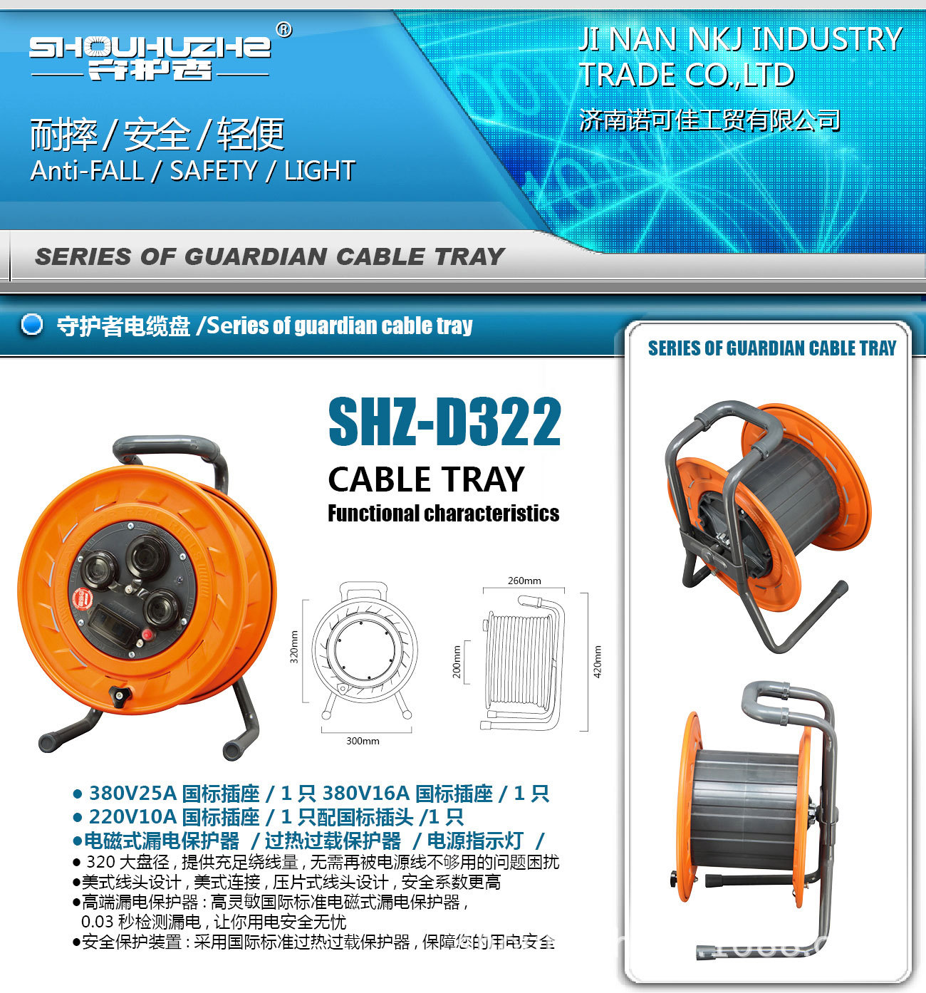 供应守护者SHZ-D322移动电缆盘